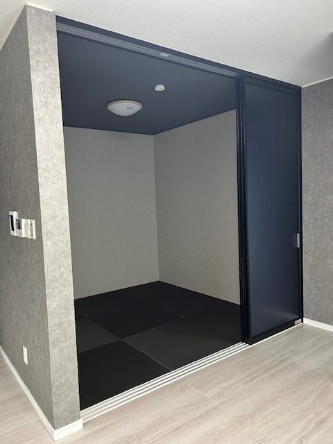 内部間仕切り工事です ブラックのフレームがおしゃれです